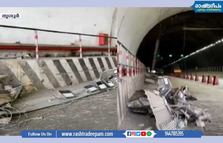 കുതിരാന് ഒന്നാം തുരങ്കത്തിലെ ലൈറ്റുകള് തകര്ന്നു. ടോറസ് ലോറി ഇടിച്ചാണ് അപകടമുണ്ടായത്. ടോറസിന് പുറകിലെ ബക്കറ്റ് ഉയര്ത്തിവെച്ച് വാഹനം ഓടിച്ചതാണ് മുകളില് സ്ഥാപിച്ചിരുന്ന ലൈറ്റുകള് തകരാന് കാരണം. 10 ലക്ഷം രൂപയിലധികം നഷ്ടമുണ്ടാതായാണ് ഇലക്ട്രിക്കല് വിഭാഗം അറിയിച്ചു. സിസിടിവി ദൃശ്യങ്ങളുടെ അടിസ്ഥാനത്തിലാണ് അന്വേഷണം പുരോഗമിക്കുന്നത്. വാഹനം കണ്ടെത്താനുള്ള ശ്രമത്തിലാണ് പൊലീസ്.