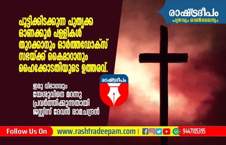 പൂട്ടിക്കിടക്കുന്ന പുതൃക്ക, ഓണക്കൂര് പള്ളികള് തുറക്കാനും ഓര്ത്തഡോക്സ് സഭയ്ക്ക് കൈമാറാനും ഹൈക്കോടതിയുടെ ഇടക്കാല ഉത്തരവ്. ഇരു വിഭാഗവും യേശുവിനെ മറന്നു പ്രവര്ത്തിക്കുന്നതായും ജസ്റ്റിസ് ദേവന് രാമചന്ദ്രന് കുറ്റപ്പെടുത്തി.