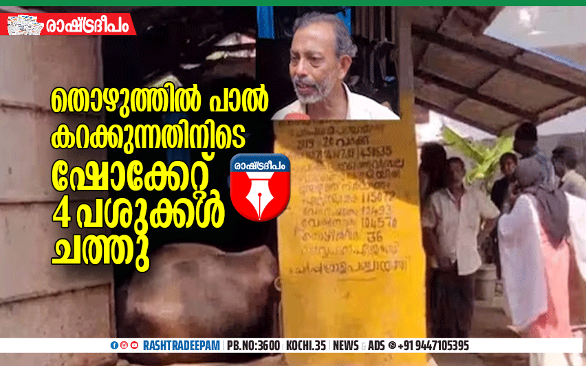 തോമസിന്റെ വീടിന് പിന്നിലുള്ള തൊഴുത്തിലാണ് ഞായറാഴ്ച പുലര്ച്ചെ രണ്ടരയോടെ സംഭവമുണ്ടായത്. മൂന്ന് പശുക്കളെ കറന്ന ശേഷം നാലാമത്തെ പശുവിനെ കറക്കാന് ശ്രമിക്കുന്നതിനിടെ പശുക്കള് എല്ലാം ഷോക്കേറ്റ് നിലത്ത് വീഴുകയായിരുന്നു. കറന്ന പാല്പാത്രം തോമസിന്റെ കയ്യില് നിന്ന് തെറിച്ചു വീണു. ഷോക്കേറ്റെങ്കിലും മറ്റ് പരിക്കുകളില്ല.