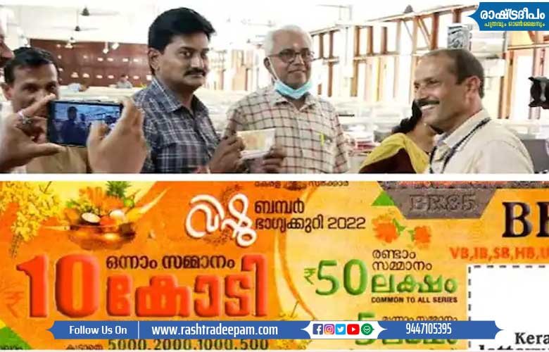 കേരള സംസ്ഥാന ഭാഗ്യക്കുറിയുടെ വിഷു ബമ്പര് ടിക്കറ്റിന്റെ ഒന്നാം സമ്മാനം ലഭിച്ച ഭാഗ്യവാന്മാരെ തിരിച്ചറിഞ്ഞു. കന്യാകുമാരിക്കടുത്ത് മണവാളക്കുറിച്ചി സ്വദേശികളായ രമേശന്, ഡോക്ടര് പ്രദീപ് എന്നിവര്ക്കാണ് ഒന്നാം സമ്മാനമായ 10 കോടി രൂപ ലഭിച്ചത്. നറുക്കെടുപ്പ് നടന്ന് ദിവസങ്ങള്ക്ക് ശേഷവും ടിക്കറ്റിന് ആരും അവകാശം ഉന്നയിച്ചിരുന്നില്ല. ലോട്ടറി ടിക്കറ്റുമായി ഇന്ന് ഇരുവരും ലോട്ടറി ഓഫീസില് എത്തുകയായിരുന്നു.