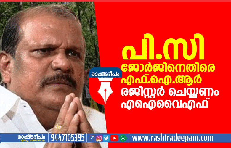 കേരളത്തിന്റെ മത-സാമുദായിക സൗഹാര്ദ അന്തരീക്ഷത്തിനെ മലീമസമാക്കുന്ന വര്ഗ്ഗീയ വിദ്വേഷ പ്രസംഗം നടത്തിയ പി.സി ജോര്ജിനെതിരെ എഫ്.ഐ.ആര് രജിസ്റ്റര് ചെയ്ത് നിയമ നടപടികള് സ്വീകരിക്കണമെന്ന് എഐവൈഎഫ് സംസ്ഥാന കമ്മിറ്റി ആവശ്യപ്പെട്ടു.