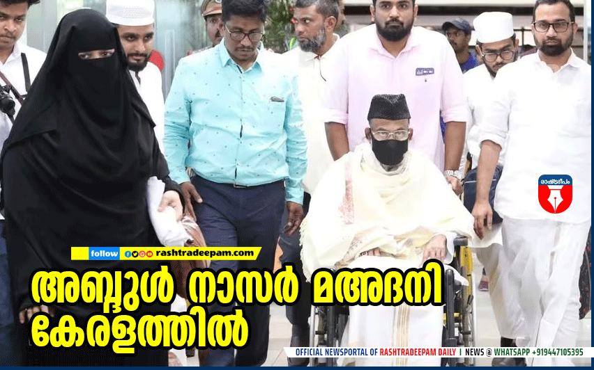 തിരുവനന്തപുരം: രോഗബാധിതനായി കഴിയുന്ന പിതാവിനെ കാണാന് സുപ്രീംകോടതിയുടെ അനുവാദം ലഭിച്ച പി.ഡി.പി. നേതാവ് അബ്ദുള് നാസര് മഅദനി കേരളത്തിലെത്തി. ബെംഗളൂരുവില്നിന്ന് ഉച്ചയ്ക്ക് 1.30-ഓടെയാണ് അദ്ദേഹം തിരുവനന്തപുരം അന്താരാഷ്ട്ര വിമാനത്താവളത്തില് എത്തിയത്. ഇവിടെനിന്ന് കൊല്ലം ശാസ്താംകോട്ട അന്വാര്ശ്ശേരിയിലെ വീട്ടിലേക്ക് റോഡ് മാര്ഗം എത്തും.