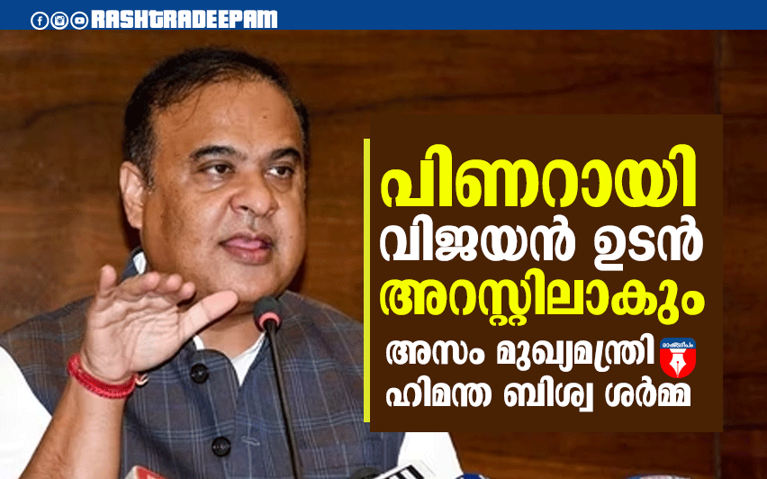 കൊച്ചി: മുഖ്യമന്ത്രി പിണറായി വിജയന്റെ അറസ്റ്റ് ദിവസങ്ങള്ക്കകമെന്ന് അസം മുഖ്യമന്ത്രി ഹിമന്ത ബിശ്വ ശര്മ്മ. കേന്ദ്ര ഏജന്സികളിലൊന്ന് ഉടന് തന്നെ പിണറായി വിജയനെ അറസ്റ്റ് ചെയ്യും. പിണറായിയുടെ അറസ്റ്റിനെ പിന്നീട് രാഹുല് ഗാന്ധി പിന്തുണക്കരുതെന്നും ഹിമന്ത ബിശ്വ ശര്മ്മ പ്രതികരിച്ചു. സ്വകാര്യ ചാനലിന് നല്കിയ അഭിമുഖത്തിലായിരുന്നു ഹിമന്ത ബിശ്വയുടെ പ്രതീകരണം.