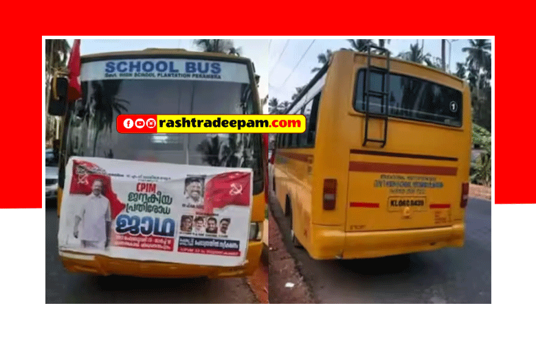 കോഴിക്കോട്: സിപിഎം സംസ്ഥാന സെക്രട്ടറി എംവി ഗോവിന്ദന് നയിക്കുന്ന ജനകീയ പ്രതിരോധ ജാഥയില് പങ്കെടുക്കാന് ആളുകളെത്തിയത് സ്കൂള് ബസില്. ആയഞ്ചേരിയിലും മുക്കത്തും പേരാമ്പ്രയിലുമാണ് ജാഥയില് പങ്കെടുക്കാന് സ്കൂള് ബസില് ആളുകളെത്തിയത്. പേരാമ്പ്ര മുതുകാട് പ്ലാന്റേഷന് ഹൈസ്കൂള് ബസിലാണ് പ്രവര്ത്തകരെ എത്തിച്ചത്. സംഭവത്തില് യൂത്ത് കോണ്ഗ്രസ് ഡിഡിഇക്ക് പരാതി നല്കി.