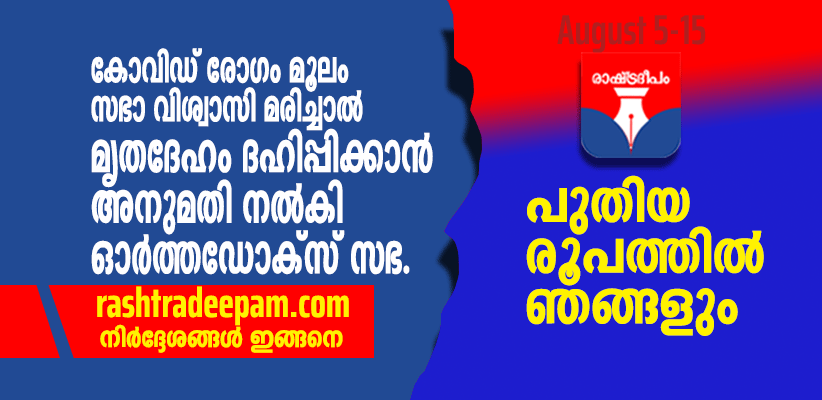 കോവിഡ് രോഗം മൂലം സഭാ വിശ്വാസി മരിച്ചാൽ മൃതദേഹം ദഹിപ്പിക്കുന്നതിന് അനുമതി നൽകി ഓർത്തഡോക്സ് സഭ.