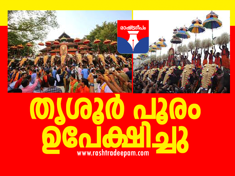 തൃശൂര് പൂരം ഉപേക്ഷിച്ചു.ചെറു പൂരങ്ങള് ഉള്പ്പെടെ പൂരവുമായി ബന്ധപ്പെട്ട ചടങ്ങുകള് ഉപേക്ഷിച്ചു. ഒരാനയേപ്പോലും എഴുന്നള്ളിക്കില്ല. എന്നാല് 5 പേര് മാത്രമായി ചടങ്ങ് മാത്രം നടത്തും.മന്ത്രിസഭാ യോഗത്തിന്റെയാണ് തീരുമാനം. തീരുമാനത്തോട് പൂര്ണ്ണമായും സഹകരിക്കുമെന്ന് ദേവസ്വം ബോര്ഡും പ്രതികരിച്ചു.