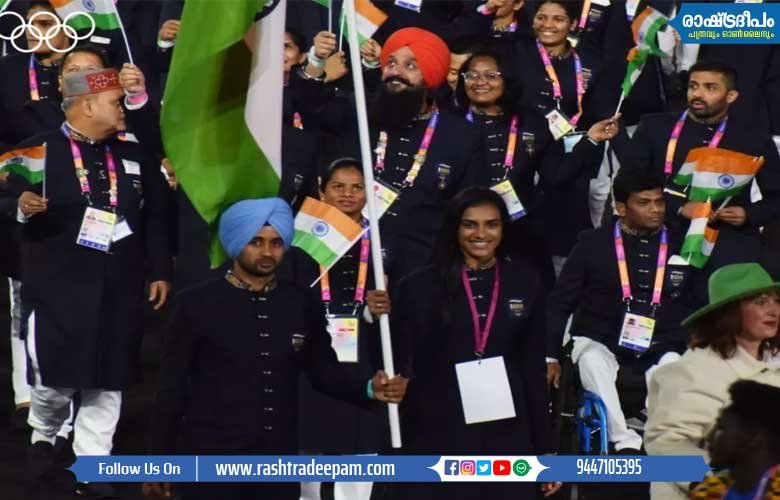 ജാവലിന് ത്രോ താരം നീരജ് ചോപ്ര പരുക്കേറ്റ് പിന്മാറിയതിനാല് ഒളിമ്പ്യന് പി.വി. സിന്ധുവും ഇന്ത്യന് ഹോക്കി ടീം ക്യാപ്റ്റന് മന്പ്രീത് സിംഗും ചേര്ന്നാണ് ഉദ്ഘാടനച്ചടങ്ങില് ഇന്ത്യന് പതാക വഹിച്ചത്. പ്രശസ്ത ബ്രിട്ടണ് ഡ്രമ്മറായ അബ്രഹാം പാഡിയും ഇന്ത്യന് ക്ലാസിക്കല് ഗായികയും ഗാനരചയിതാവുമായ രഞ്ജന ഘട്ടക്കിന്റെയും പ്രകടനം നഗരത്തെ സംഗീത മയത്തിലാക്കി. ഏകദേശം രണ്ടര മണിക്കൂര് നീണ്ടുനിന്ന ഉദ്ഘാടന ചടങ്ങും കലാപരിപാടികളും പ്രശസ്ത ക്രൈം നാടകമായ ‘പീക്കി ബ്ലൈന്ഡേഴ്സ്’ നിര്മ്മിച്ച ബ്രിട്ടീഷ് തിരക്കഥാകൃത്ത് സ്റ്റീവന് നൈറ്റാണ് സംവിധാനം ചെയ്തത്.